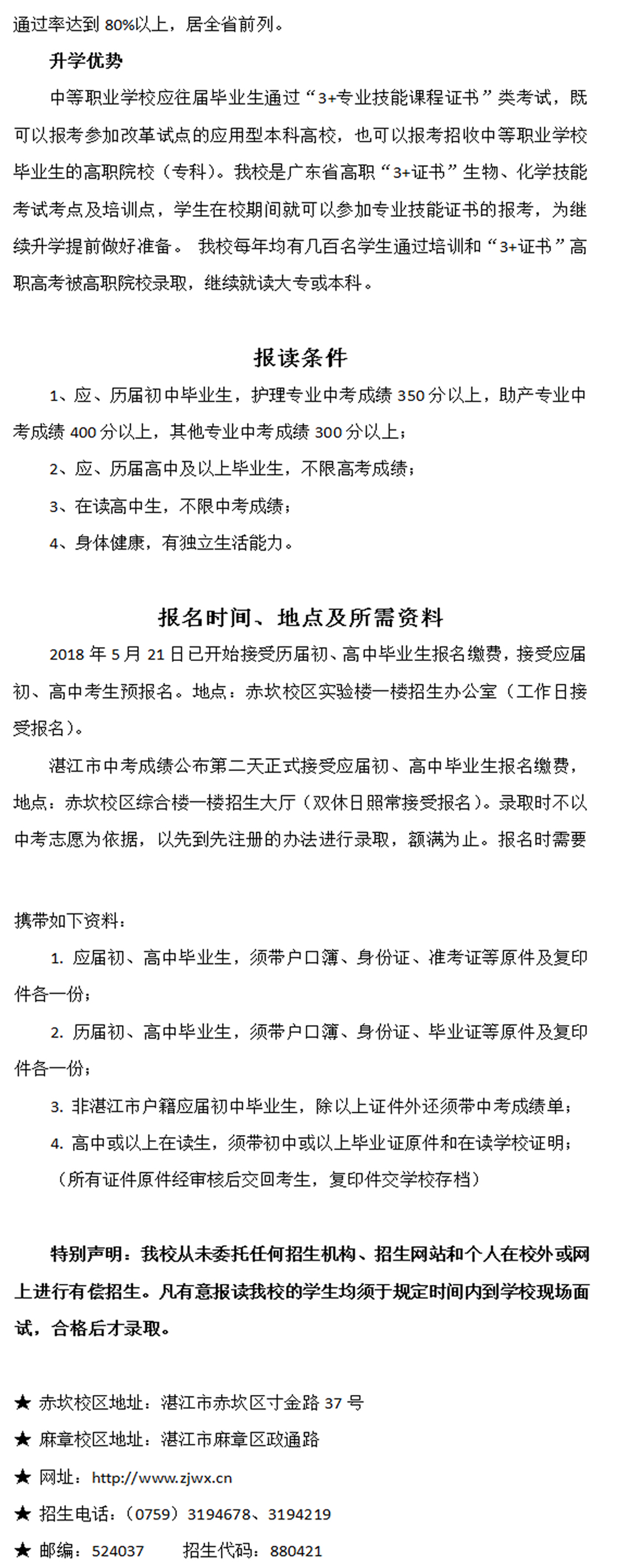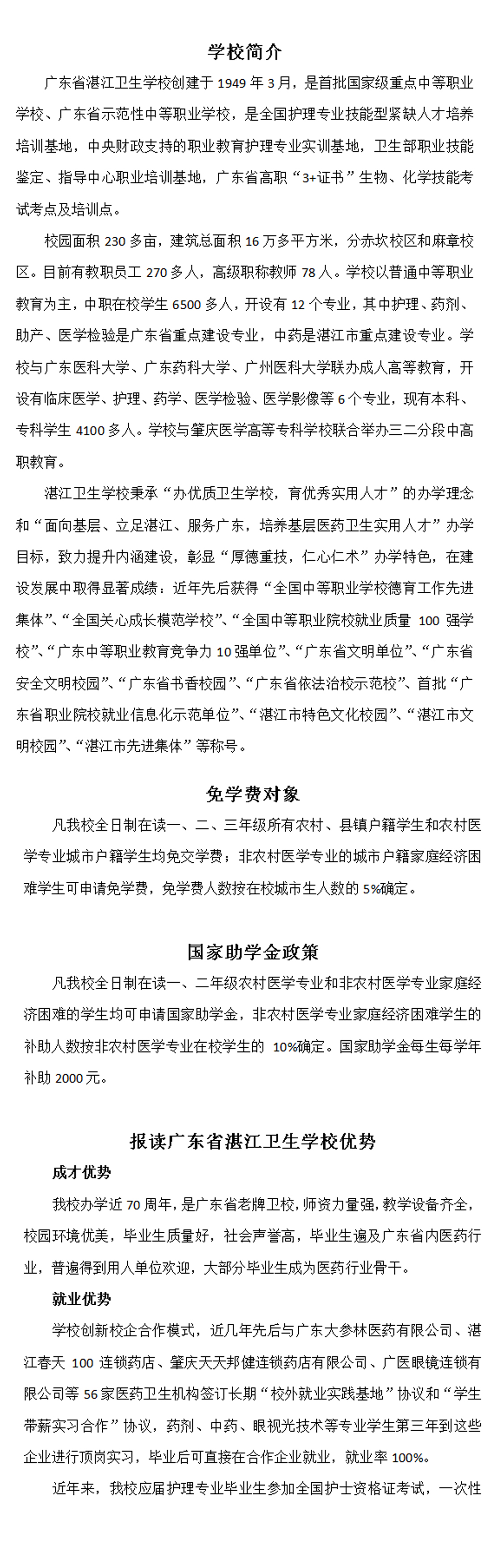 广东省湛江卫生学校2018年招生简章