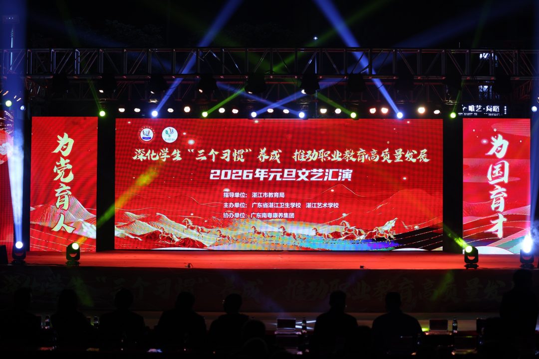 研讨交流启迪智慧,文艺汇演凝聚力量。当晚,“深化‘三个习惯’养成,推动中职教育高质量发展”暨2026年元旦文艺汇演在湛江卫生学校麻章校区运动场精彩上演,领导、专家与职教同仁们与两校师生一同观看了演出。