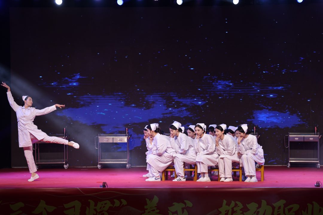 晚会由湛江市教育局指导,湛江卫生学校与湛江艺术学校联合承办。两校师生同台献艺,以歌舞、朗诵、情景剧、器乐演奏等丰富形式,生动展现了职教学子勤学善思、健体铸魂、向美而行的精神风貌。民族舞《石榴花开》舞出团结之美,雷剧《林冲夜奔》彰显传统魅力,情景剧《守护生命的光》巧妙融入了卫生职教特色,乐队演唱点燃青春热情……一个个精心编排的节目,不仅是一场视听盛宴,更是湛江职业教育坚持立德树人、深化“三个习惯”养成教育成果的生动展示,既是两校艺术教育与校园文化建设的集中汇报,也深化了校际合作与情感联结,为职业教育高质量发展注入了蓬勃的文化活力。