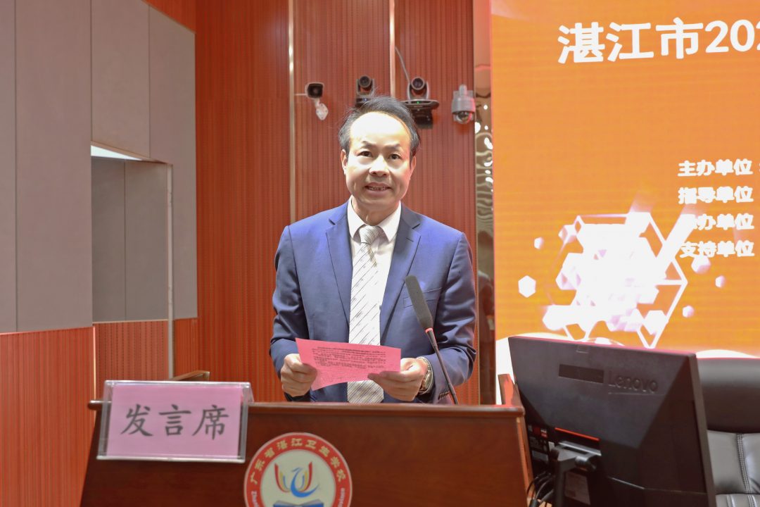 湛江卫生学校党委书记陈日新致欢迎辞。他代表学校全体师生对与会嘉宾表示热烈欢迎,并指出职业教育是支撑产业发展、促进就业创业的重要阵地。承办此次会议,是荣誉更是责任。学校将全力做好服务,确保活动高效开展。