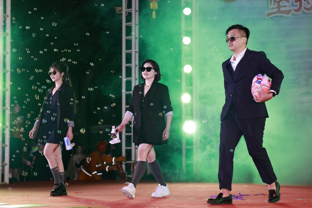 《教师风采秀》教师们把各自专业的元素融入服装和表演,步伐自信,尽情展示各专业风采,将晚会现场的氛围推向了另一个高潮,赢得现场师生的热烈欢呼。