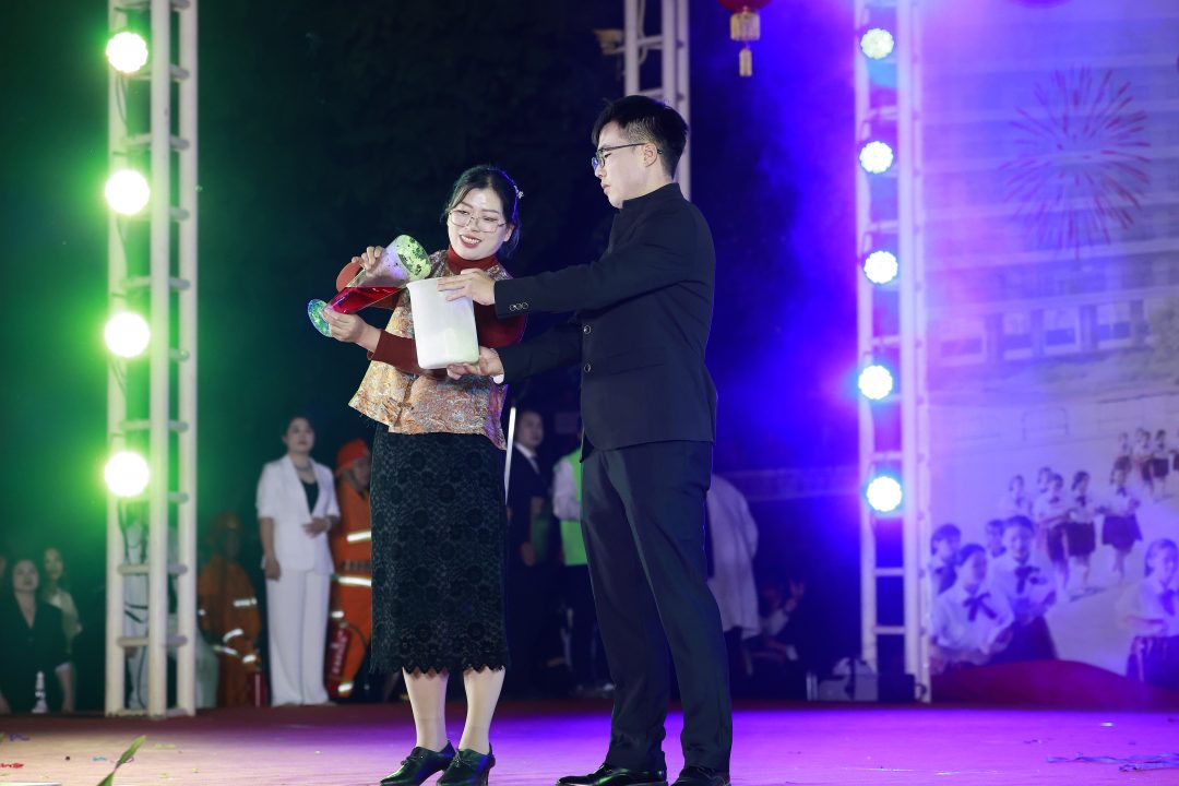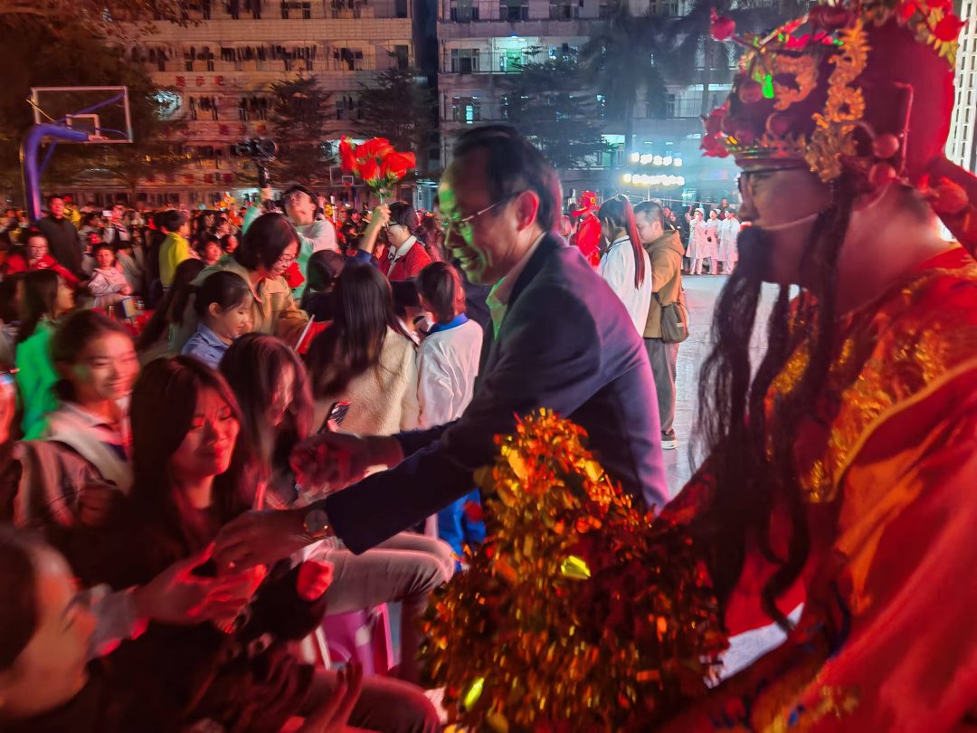随着“财神”闪亮登场,学校领导、教师代表们一起向观众们派送糖果和新年祝福,在浓浓的节日氛围中将新年的喜悦和温暖传递给在场的每一个人。